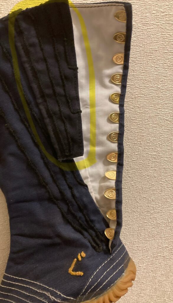 これを地下足袋に付けることによって、ふくらはぎの太さ調整が可能になりました。無事解決です!